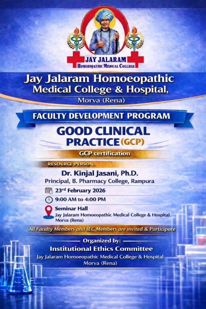 23/02/2026: Faculty Development Program on Good Clinical Practice at Jay Jalaram Homoeopathic Medical College