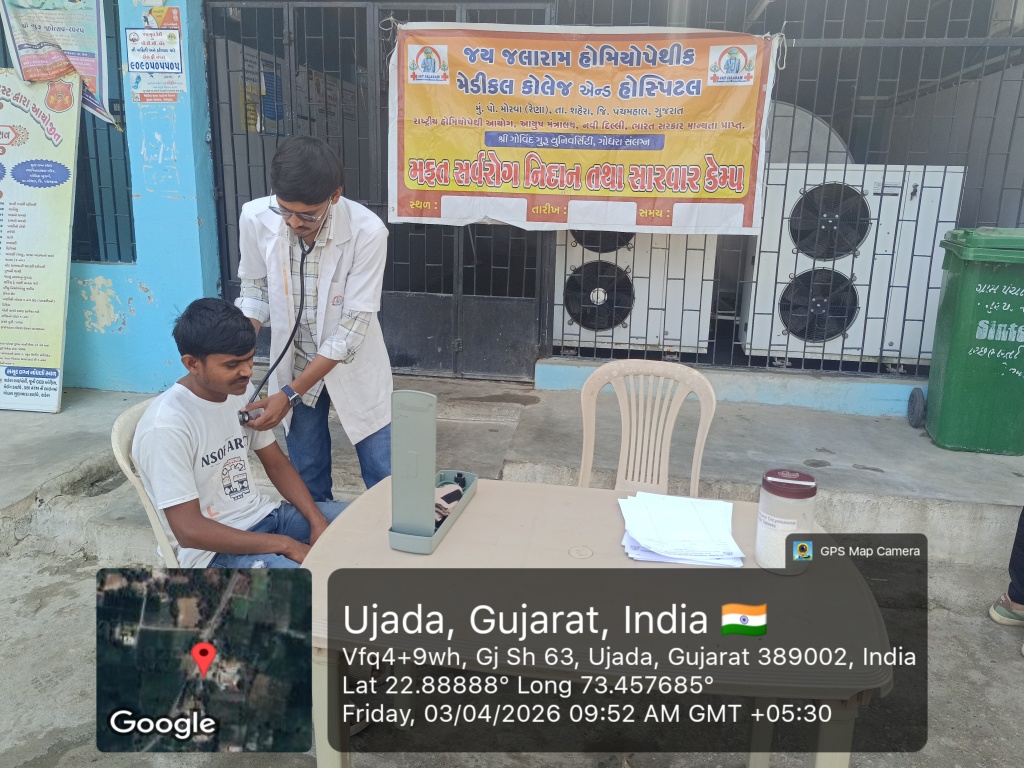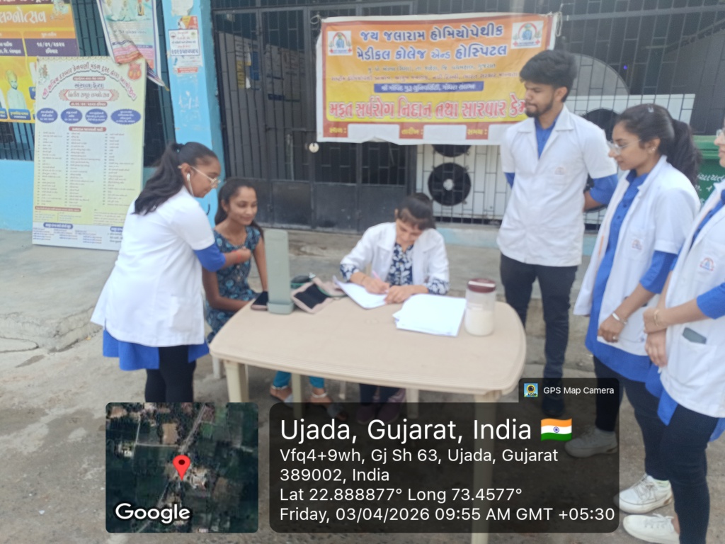 3/04/2026: Homoeopathic Week Celebration, Third day activity was Walk for Homoeopathy and medical camp in the village ujada