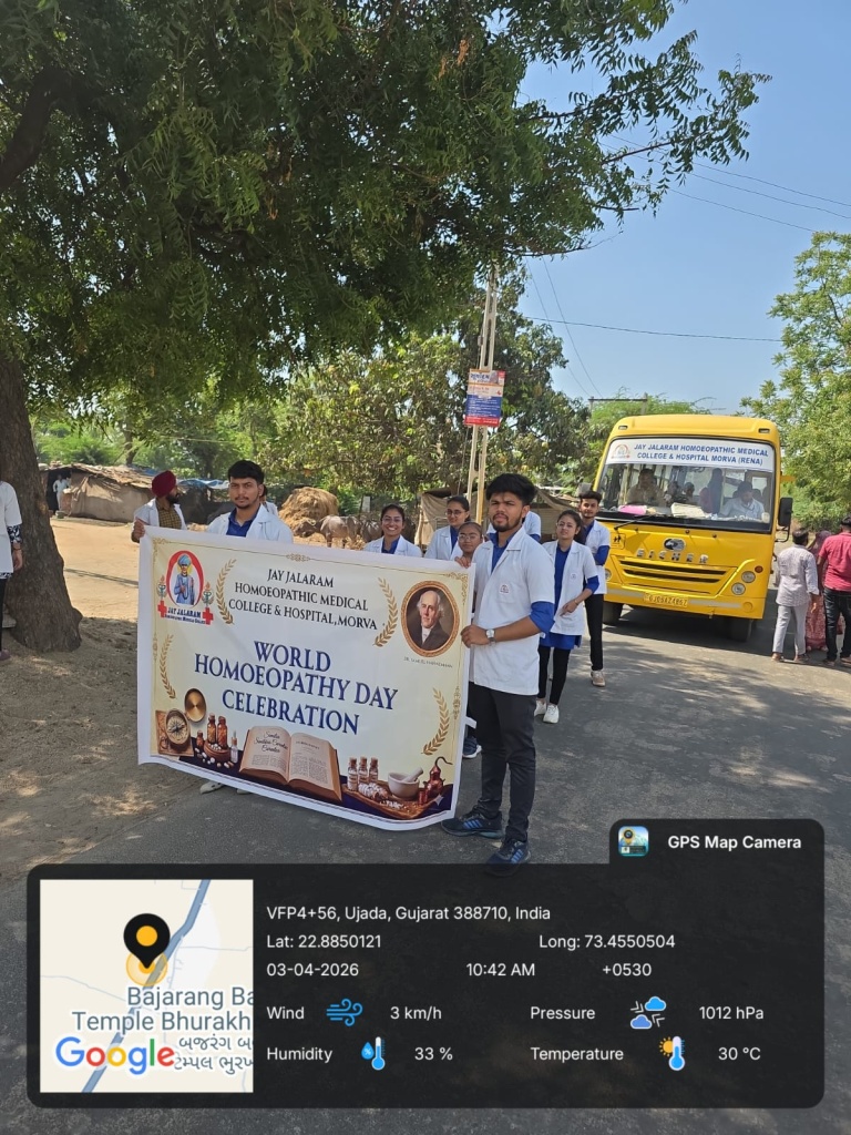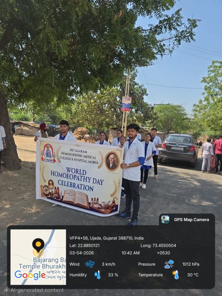 10/04/2026: World Homoeopathy Day was celebrated by an awareness walk followed by a seminar by homoeopathic practitioners in town Modasa