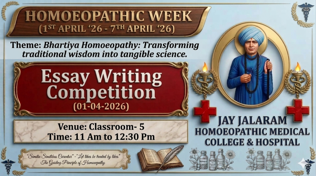 1/04/2026: Homoeopathic Week Celebration, First day activity was Essay Competition on the theme: Scope of Nano Pharmacology in Homoeopathy
